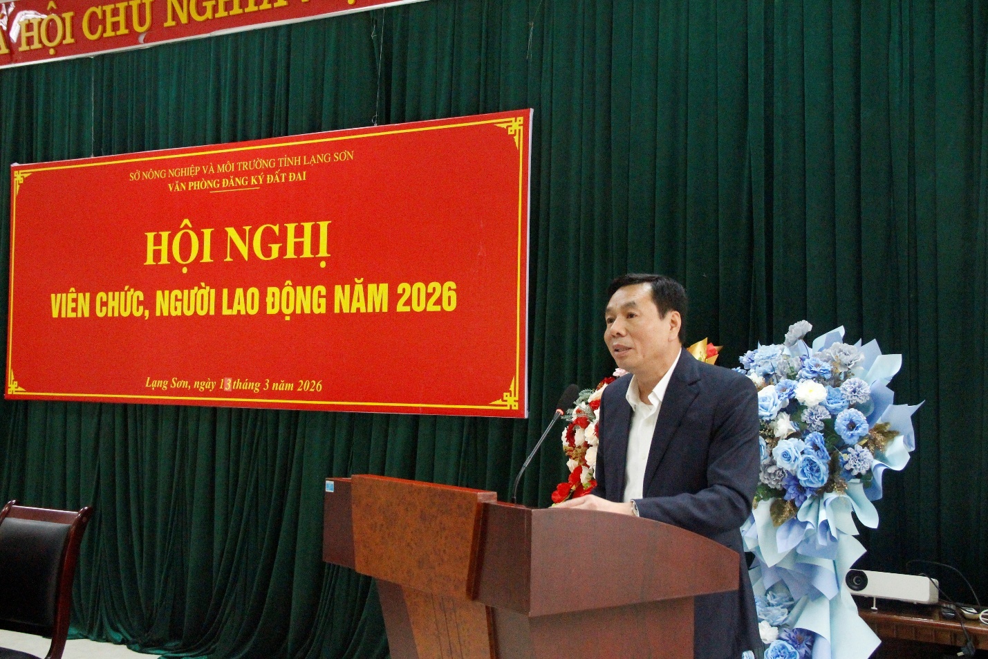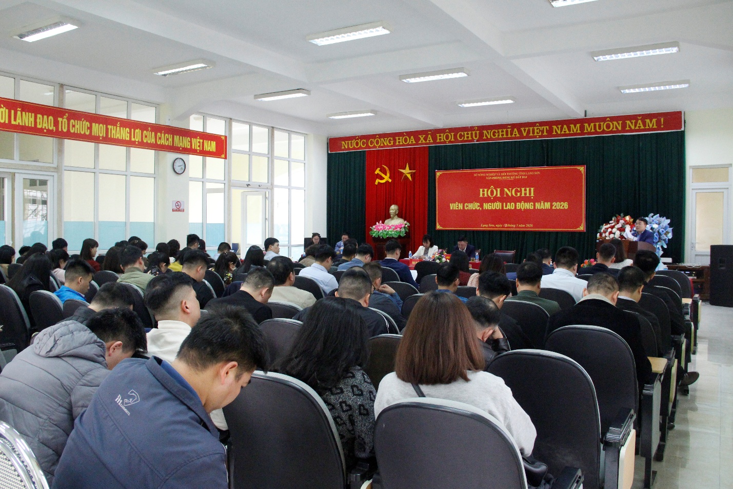 Thực hiện Chương trình công tác năm 2026, được sự đồng ý của Lãnh đạo Sở Nông nghiệp và Môi trường, Văn phòng đăng ký đất đai triệu tập Hội nghị viên chức, người lao động năm 2026. Dự và chỉ đạo Hội nghị có đồng chí Nguyễn Văn Hạnh, Phó Giám đốc Sở Nông nghiệp và Môi trường; cùng dự có các đồng chí Lãnh đạo đơn vị, Lãnh đạo các phòng, Chi nhánh trực thuộc và toàn thể viên chức, người lao động thuộc Văn phòng đăng ký đất đai.