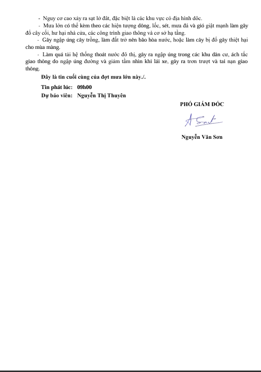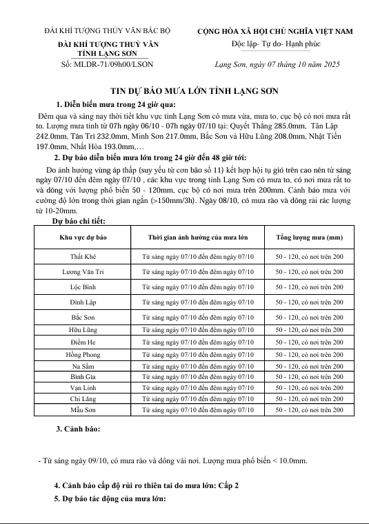 Tin dự báo mưa lớn tỉnh Lạng Sơn