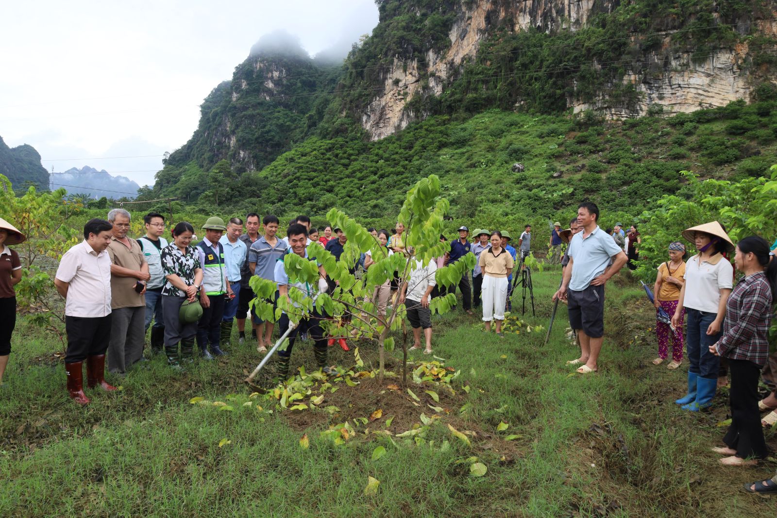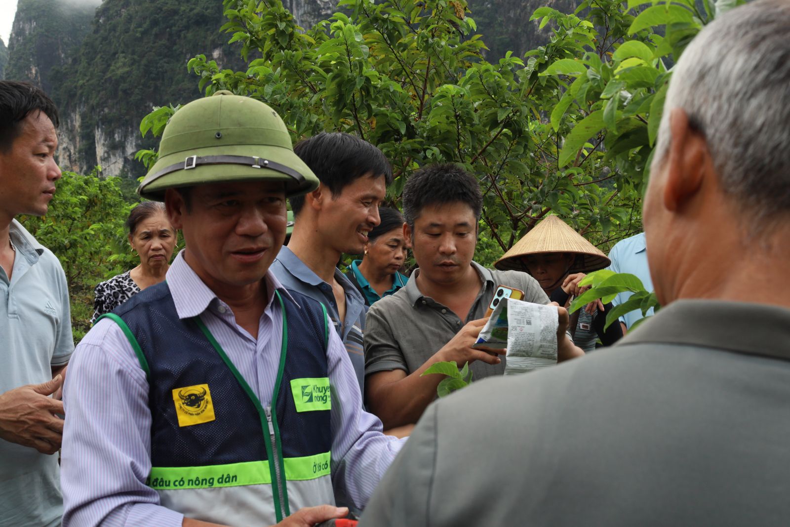 Các chuyên gia nông nghiệp hướng dẫn người dân kỹ thuật phục hồi cây Na tại xã Cai Kinh, tỉnh Lạng Sơn.