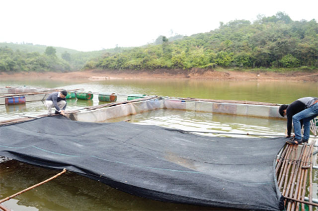 Di chuyển lồng đến nơi ít gió, hạ độ sâu lồng nuôi từ 2,5 - 4m. Chủ động che phủ mặt lồng nuôi bằng giá thể bèo, rơm rạ khô, nilon sáng màu hoặc bạt vào thời gian rét đậm, rét hại; có thể sử dụng thêm các ống tre, ống nhựa, sọt... bên trong có các búi rơm tạo giá thể, làm hang, để thủy sản trú ẩn tránh rét, đặt ở giữa lồng và các góc lồng nuôi.