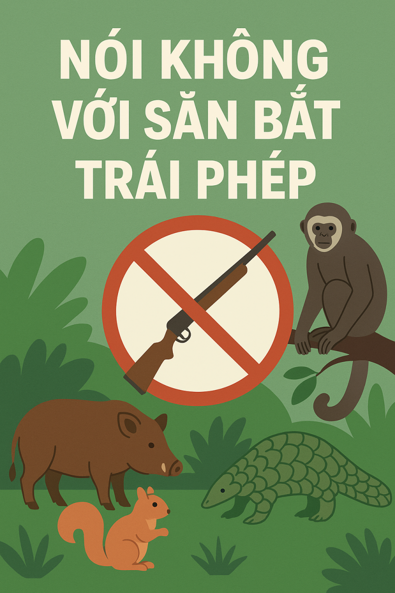 Săn bắt, buôn bán và tiêu thụ động vật hoang dã trái phép là hành vi vi phạm pháp luật, đi ngược lại lợi ích cộng đồng và sự phát triển bền vững của xã hội. Vì vậy, mọi người trong cộng đồng hãy cùng chung tay bảo vệ, nói “Không” với săn bắt, buôn bán, tiêu thụ động vật hoang dã.
