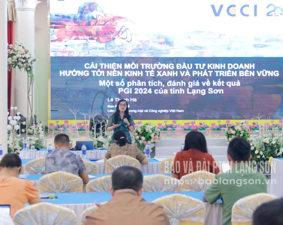 Báo cáo viên đến từ Liên đoàn Thương mại và Công nghiệp Việt Nam truyền đạt một số nội dung liên quan đến chỉ số PGI tại tỉnh Lạng Sơn tháng 9/2025