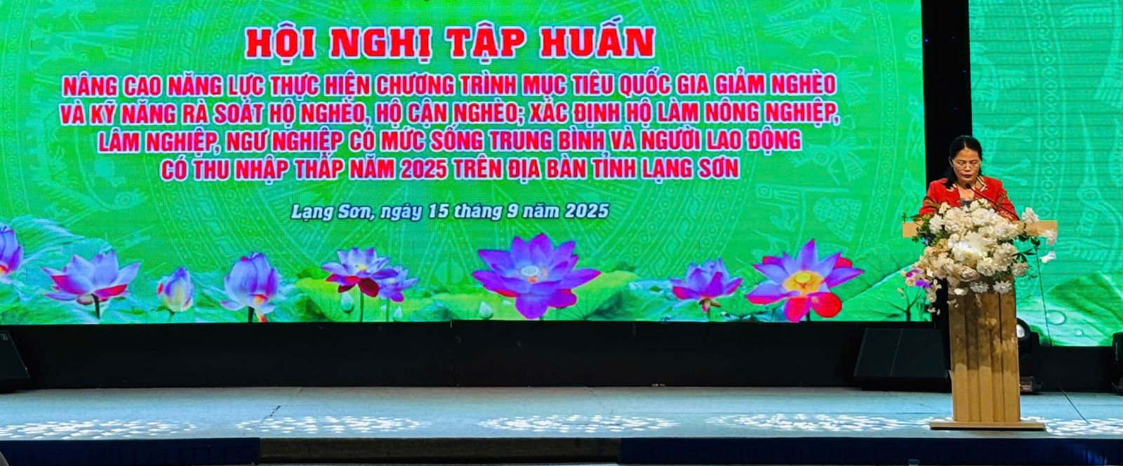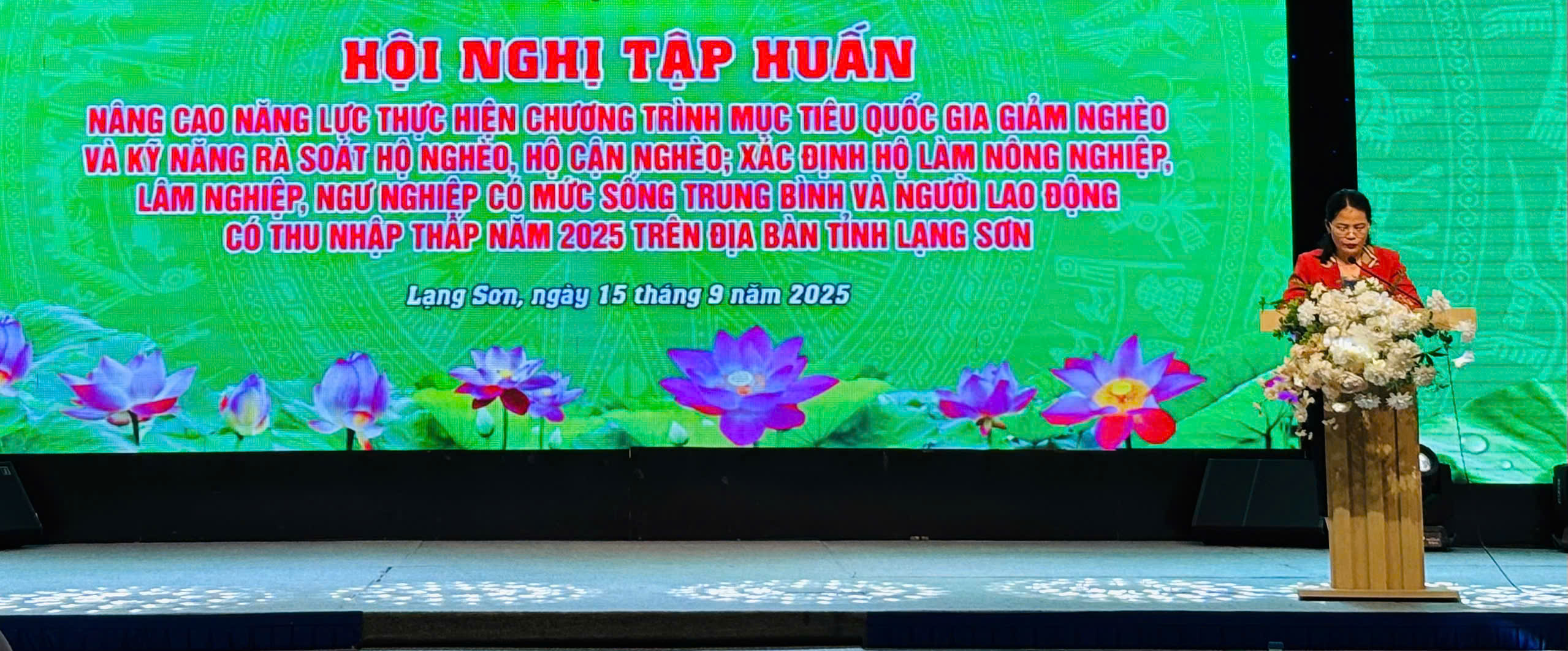 Ngày 15/9/2025, Sở Nông nghiệp và Môi trường đã tổ chức Hội nghị tập huấn Nâng cao năng lực thực hiện Chương trình mục tiêu quốc gia giảm nghèo và kỹ năng rà soát hộ nghèo, hộ cận nghèo; xác định hộ làm nông nghiệp, lâm nghiệp, ngư nghiệp có mức sống trung bình và người lao động có thu nhập thấp năm 2025 trên địa bàn tỉnh Lạng Sơn cho trên 300 đại biểu là đại diện Lãnh đạo, Chuyên viên các Sở, ban, ngành thành viên Ban Chỉ đạo các chương trình mục tiêu quốc gia, Ban Chỉ đạo rà soát hộ nghèo, hộ cận nghèo của tỉnh và đại diện Lãnh đạo, công chức làm công tác giảm nghèo của UBND 65 xã, phường trên địa bàn tỉnh.