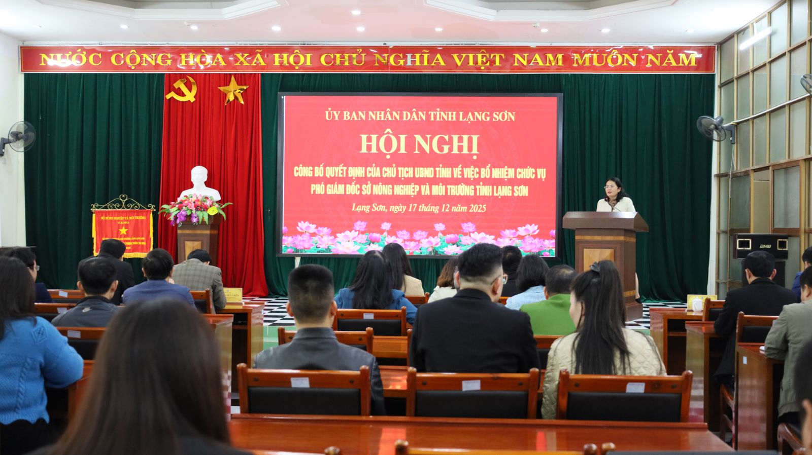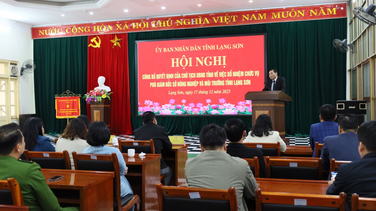 Chiều 17/12/2025, tại Sở Nông nghiệp và Môi trường diễn ra Hội nghị công bố Quyết định của Chủ tịch UBND tỉnh về việc bổ nhiệm chức vụ Phó Giám đốc Sở Nông nghiệp và Môi trường.