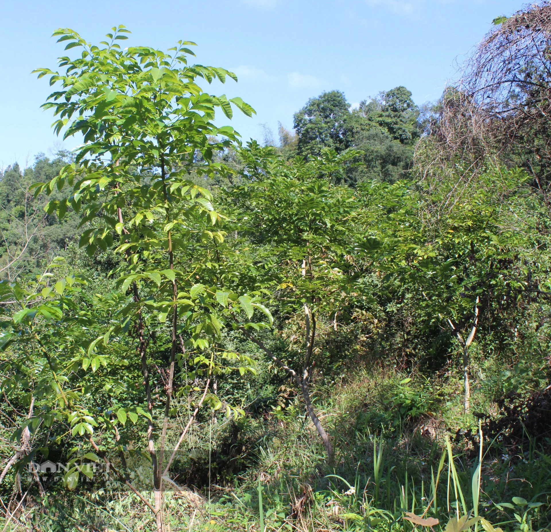Rời vườn nhà ông Bảo, chúng tôi ghé thăm vườn trám của ông Hoàng Văn Nên, cách đó không xa. Vườn nhà ông Nên cũng nhận được hỗ trợ từ Chương trình mục tiêu Quốc gia giảm nghèo bền vững, dẫn chúng tôi đi giữa những hàng cây trám đen ghép, ông Nên không giấu được niềm vui.