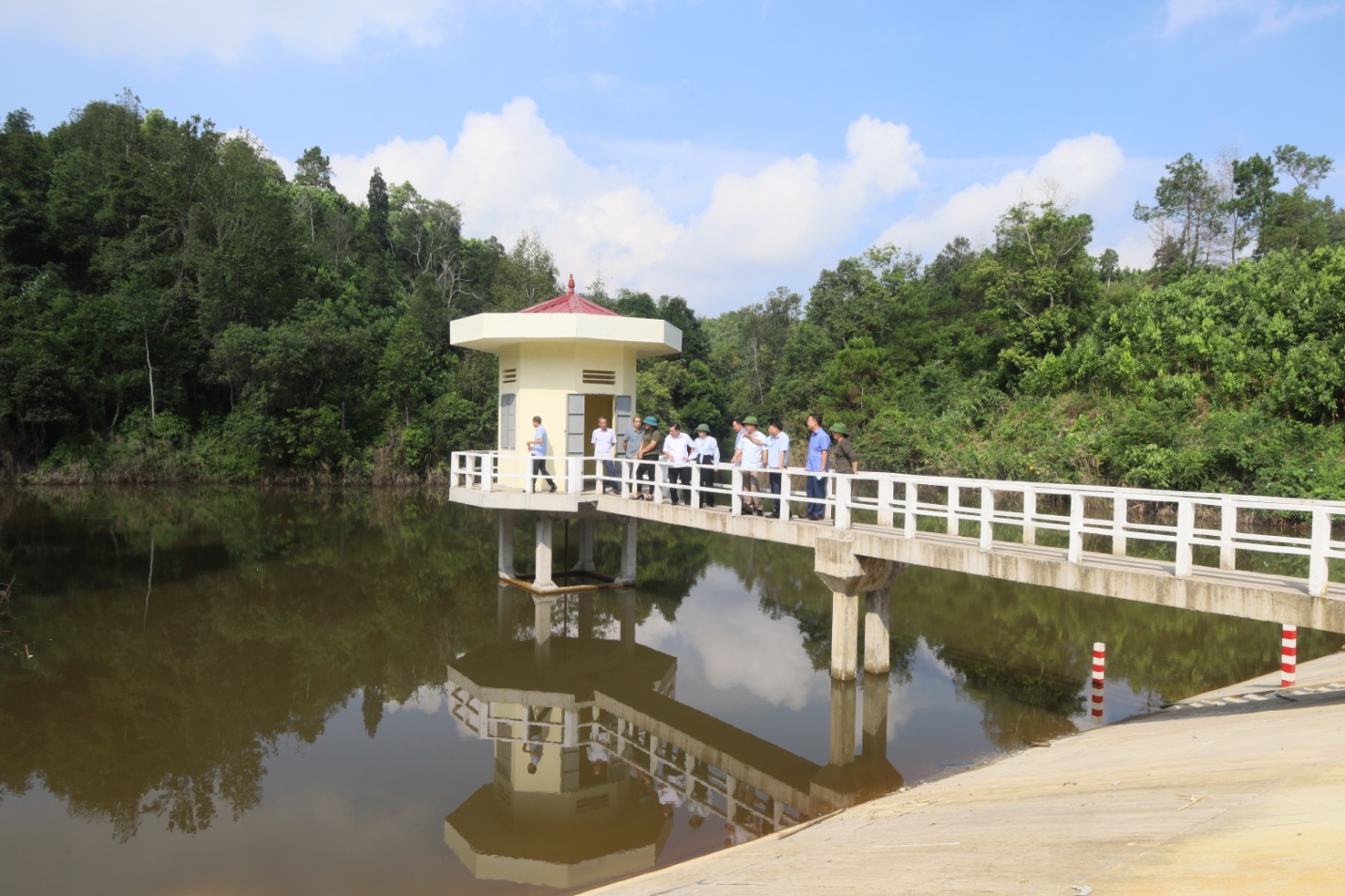 Lãnh đạo Sở Nông nghiệp và Môi trường kiểm tra các hạng mục công trình Hồ chứa nước Slam Kha, xã Tràng Định.