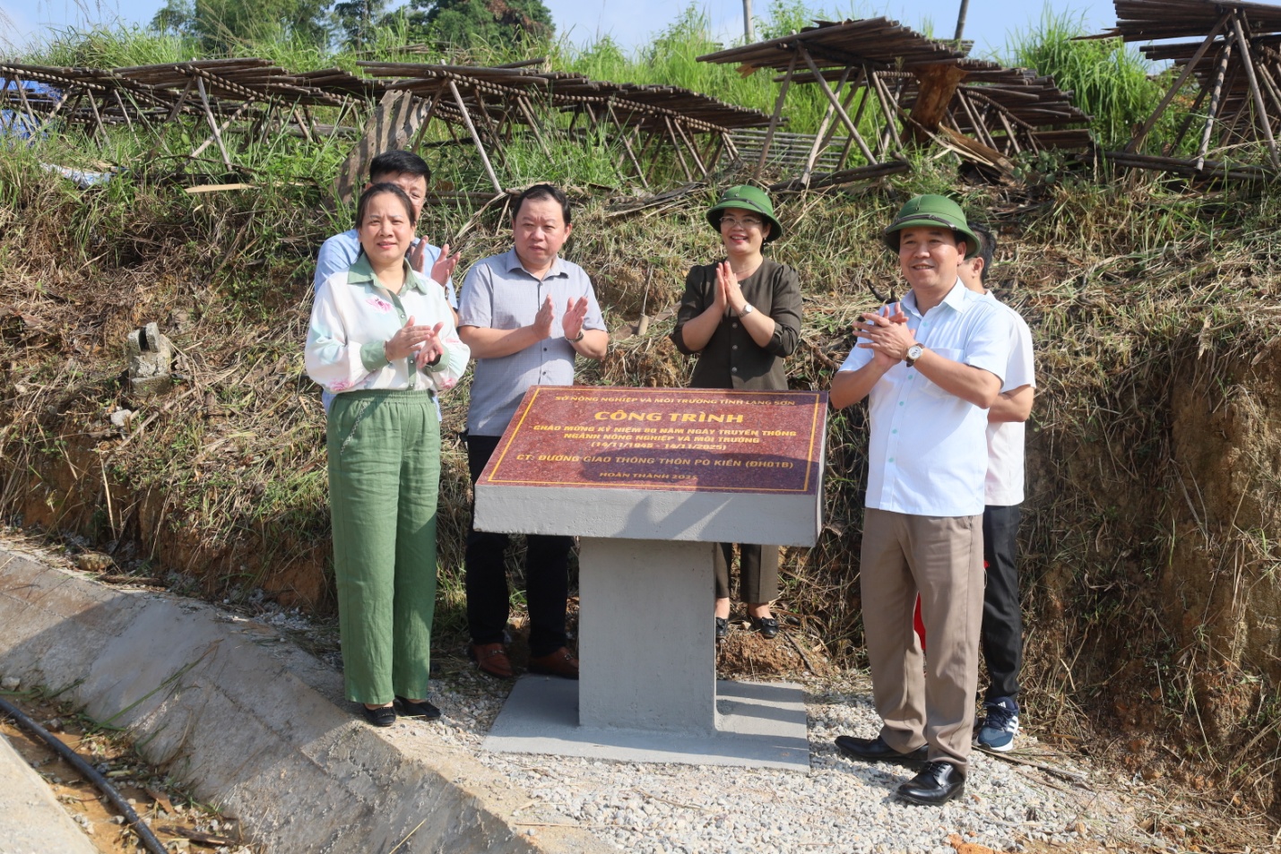 Lãnh đạo Sở Nông nghiệp và Môi trường và UBND xã Tân Tiến, UBND xã Thất Khê gắn biển hoàn thành công trình đường giao thông thôn Pò Kiền (ĐH.01B).