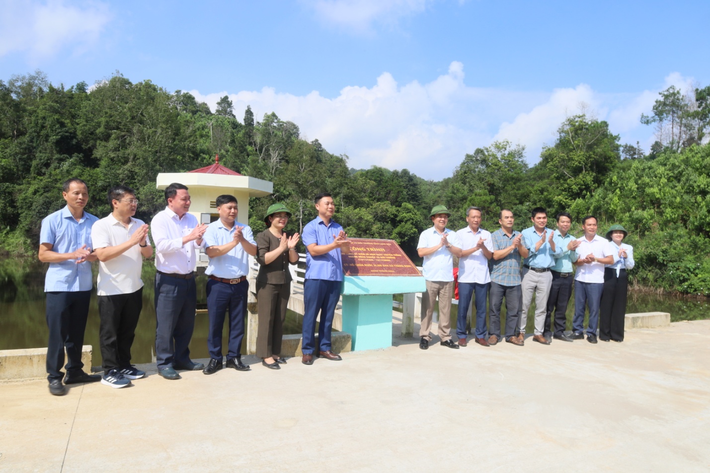 Lãnh đạo Sở Nông nghiệp và Môi trường và UBND xã Tràng Định gắn biển hoàn thành công trình Hồ chứa nước Slam Kha.