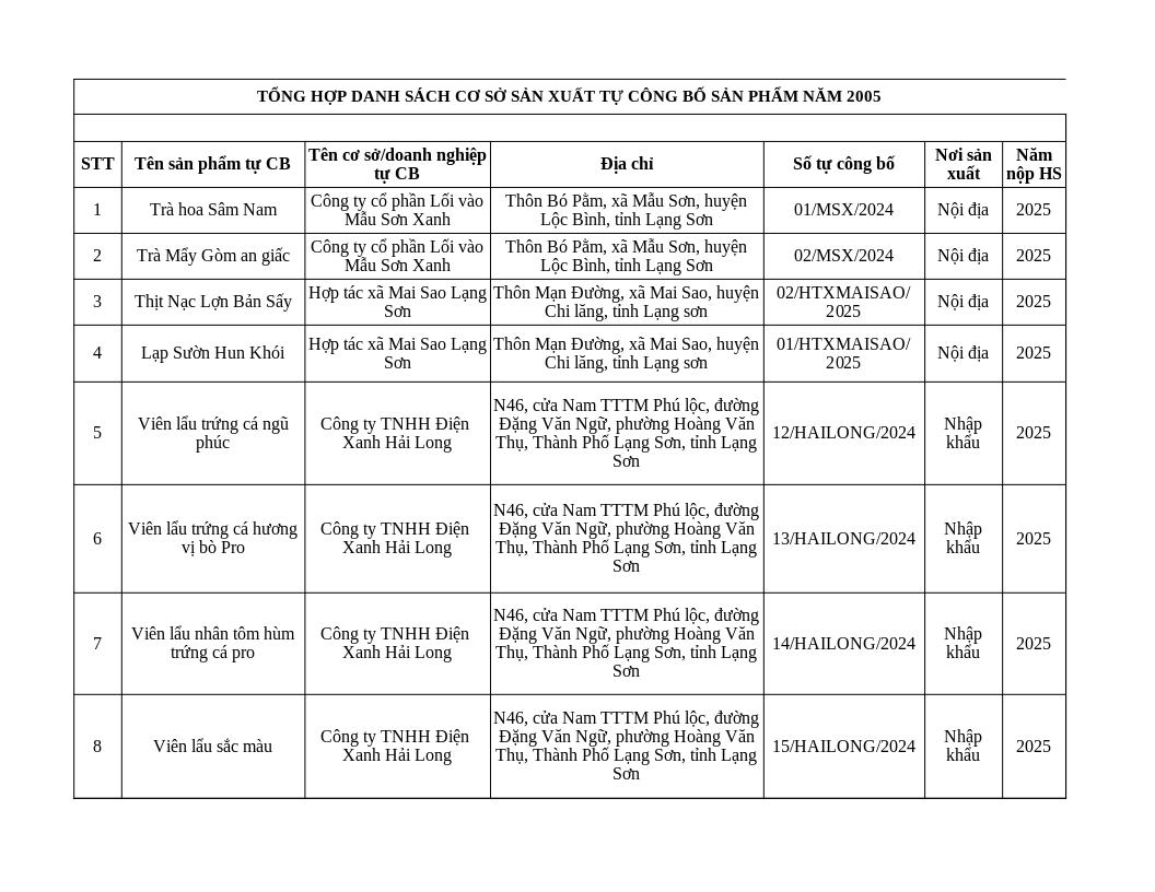 | Tiêu đề văn bản | Danh sách tự công bố sản phẩm 2025 (tính đến ngày 01/12/2025) | ||