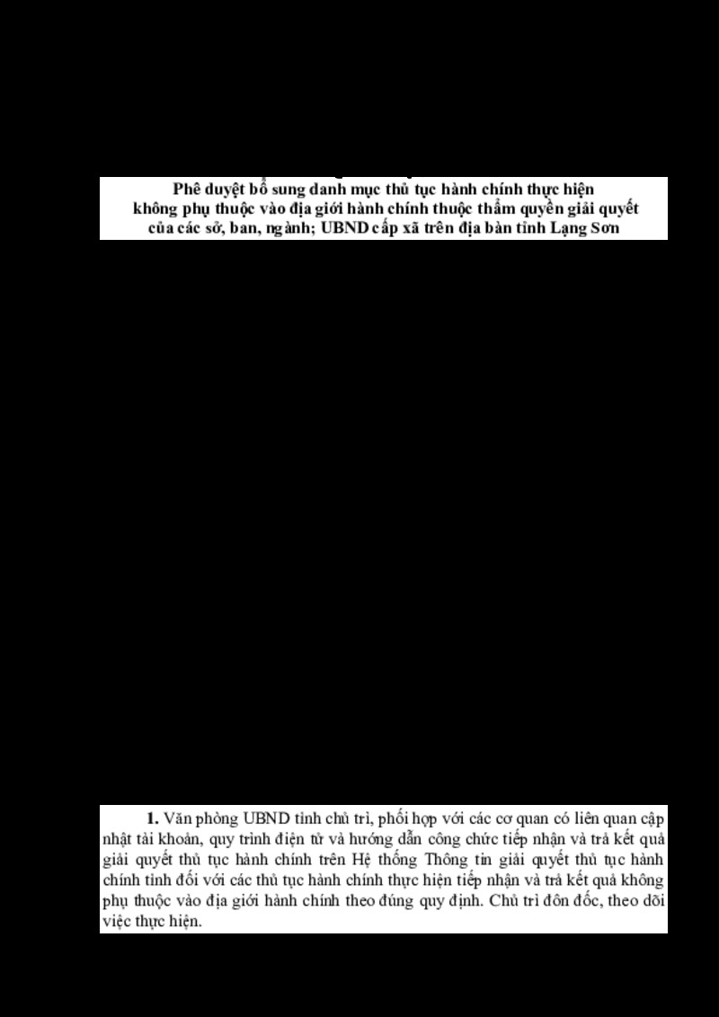 | Tiêu đề văn bản | Quyết định Phê duyệt bổ sung danh mục thủ tục hành chính thực hiện không phụ thuộc vào địa giới hành chính thuộc thẩm quyền giải quyết của các sở, ban, ngành; UBND cấp xã trên địa bàn tỉnh Lạng Sơn | ||