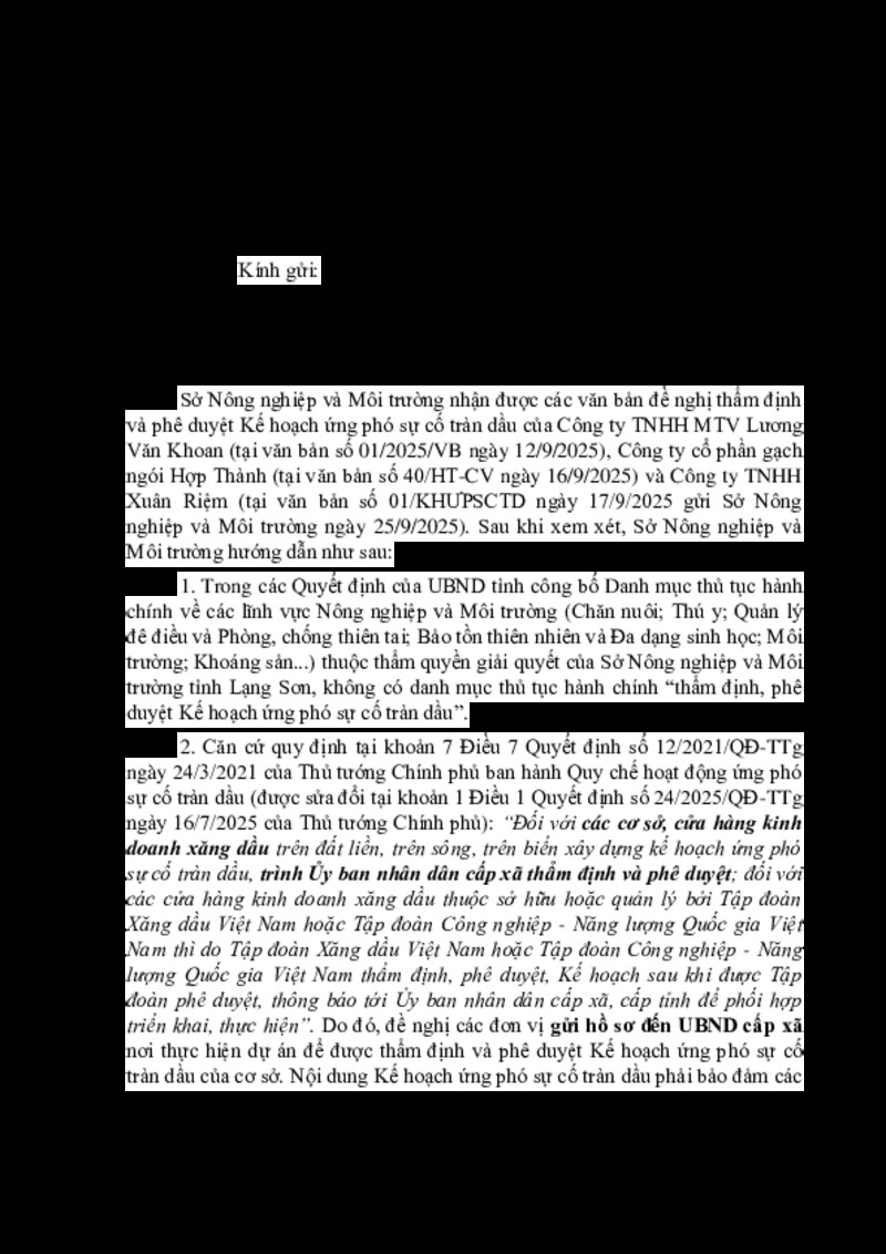 | Tiêu đề văn bản | Về việc thẩm quyền thẩm định, phê duyệt Kế hoạch ứng phó sự cố tràn dầu cấp cơ sở | ||